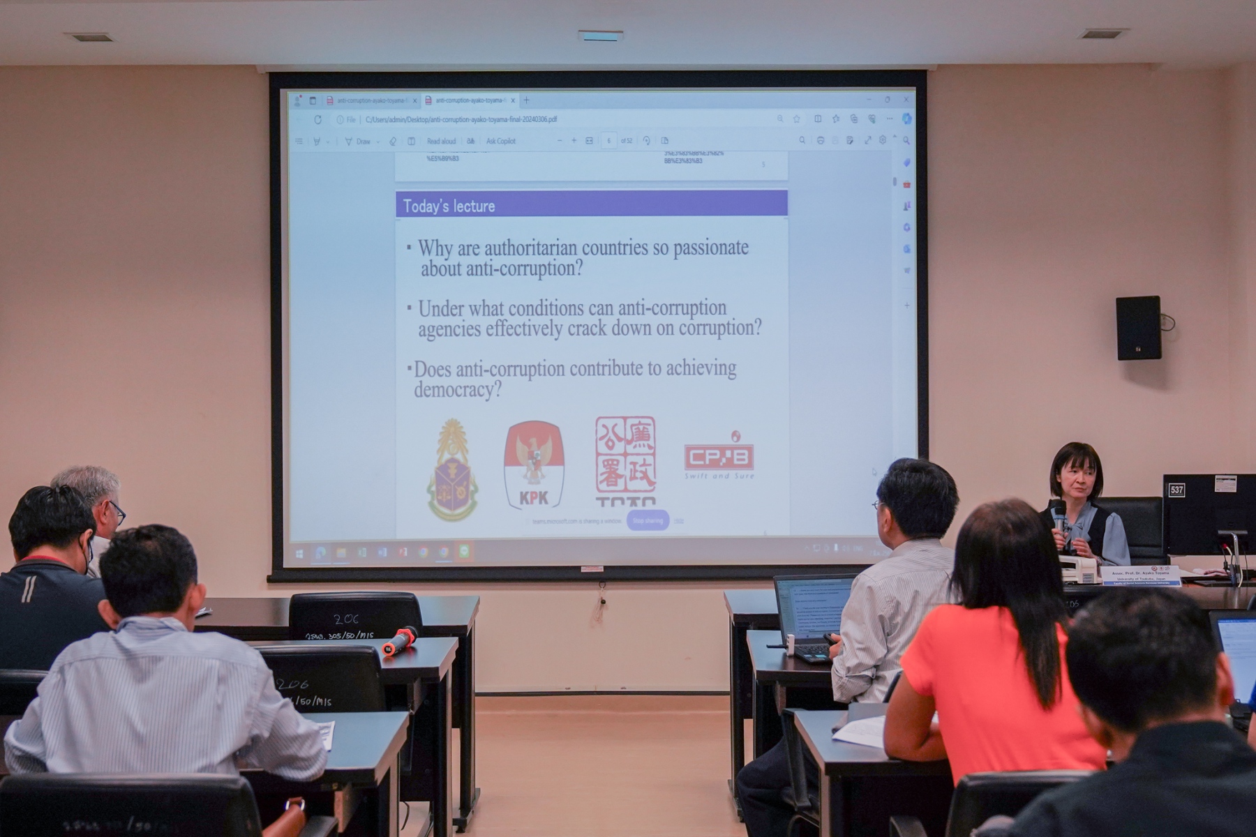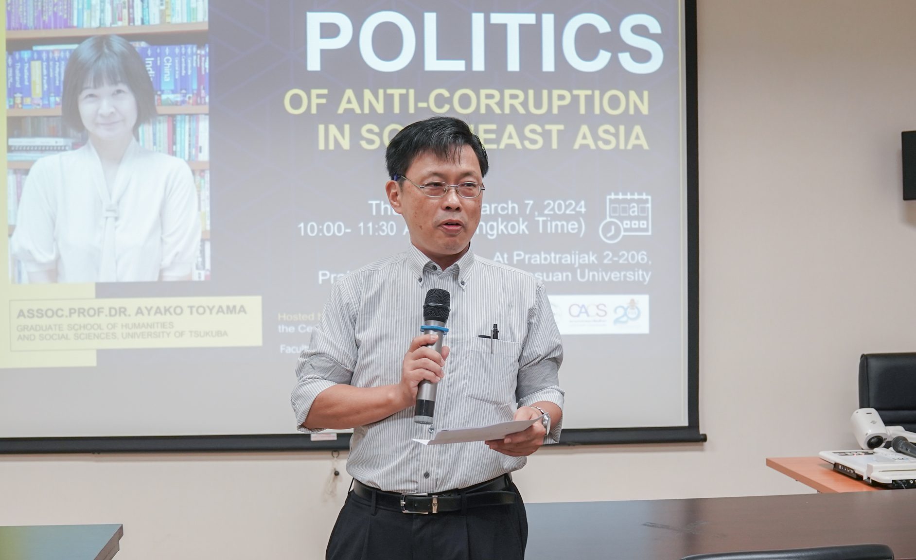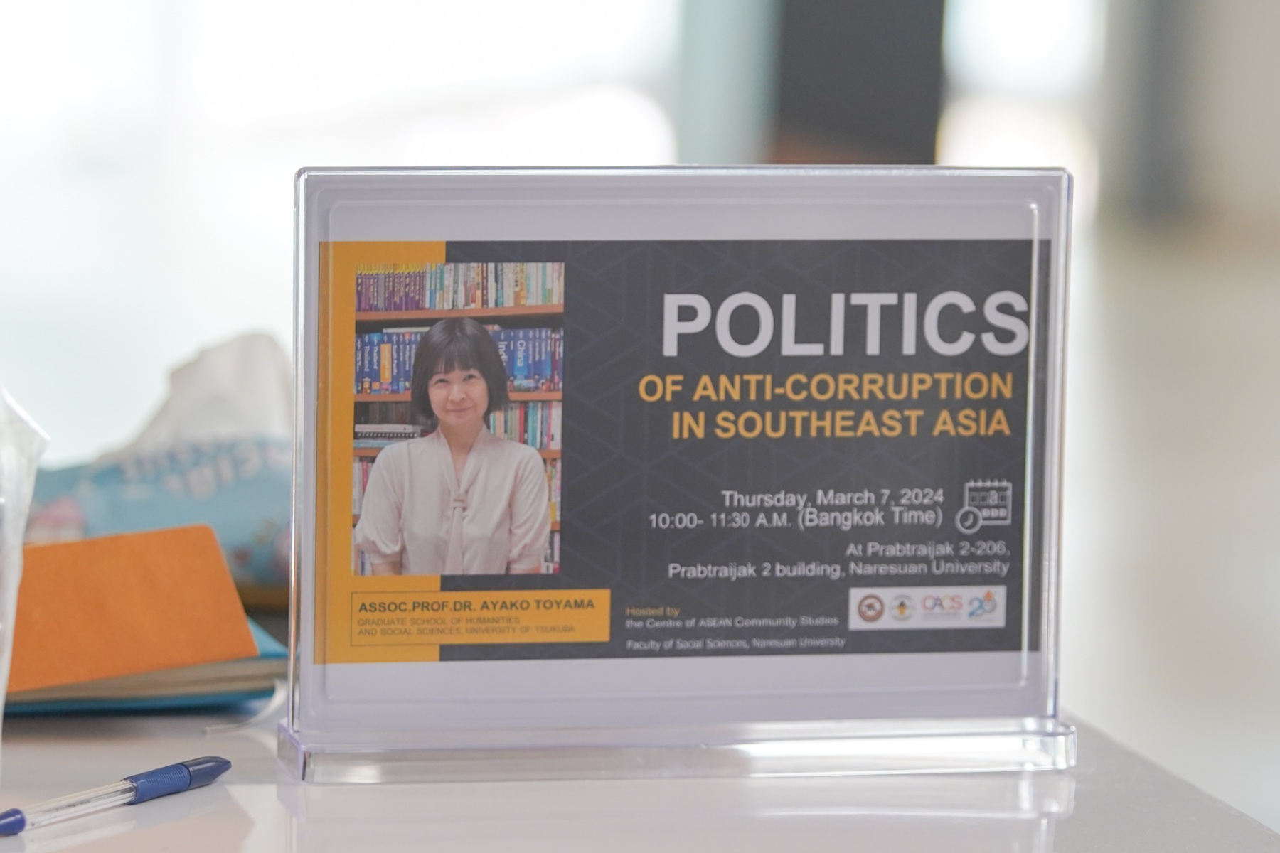 วันอาทิตย์ที่ 24 มีนาคม 2567 คณะสังคมศาสตร์ มหาวิทยาลัยนเรศวร จัดโครงการ Public lecture หัวข้อ “Politics of Anti-Corruption in Southeast Asia” โดยได้รับเกียรติจาก Associate Professor Dr. Ayako Toyama จาก Graduate School of Humanities and Social Sciences, University of Tsukuba ประเทศญี่ปุ่น เป็นวิทยากรบรรยายพิเศษ ณ ห้อง 206 อาคารปราบไตรจักร 2 มหาวิทยาลัยนเรศวร