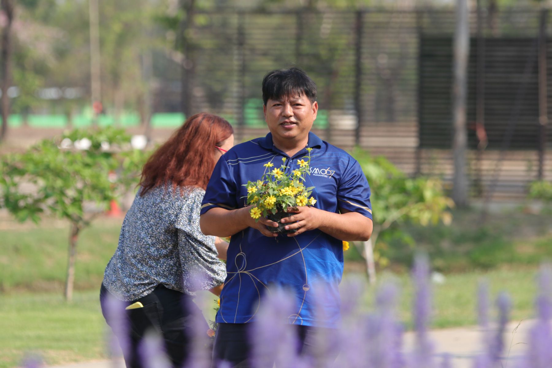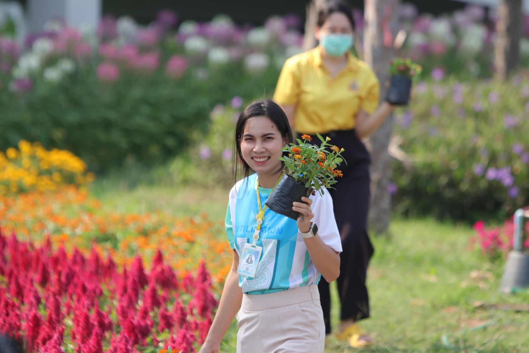 นอกจากการดูแลต้นไม้แล้ว กิจกรรมยังได้มีการ แจกจ่ายไม้ดอกกระถาง หลังจากเสร็จสิ้นงานพระราชทานปริญญาบัตร โดยนำไม้ดอกกระถางที่ใช้ตกแต่งงานมาแบ่งปันให้กับบุคลากร นิสิต และประชาชนที่สนใจ เพื่อนำกลับไปตกแต่งสวนภายในบ้านหรือที่ทำงาน ซึ่งช่วยยืดอายุการใช้งานของทรัพยากรและลดการสูญเสียโดยเปล่าประโยชน์