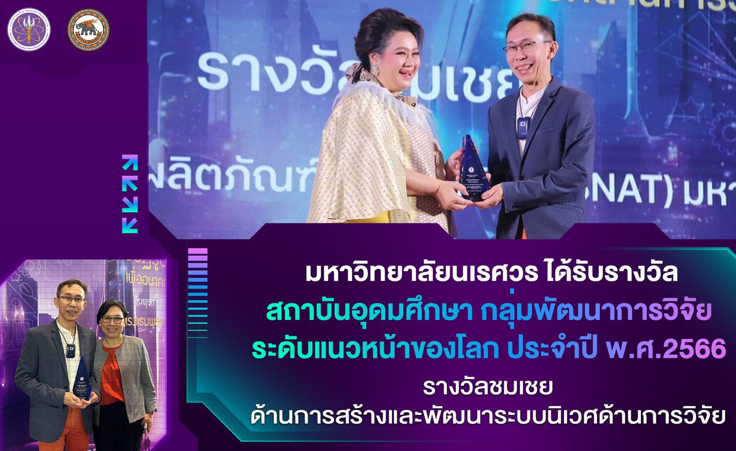 ม.นเรศวร คว้ารางวัลสถาบันอุดมศึกษากลุ่มพัฒนาการวิจัยระดับแนวหน้าของโลก ประจำปี 2566