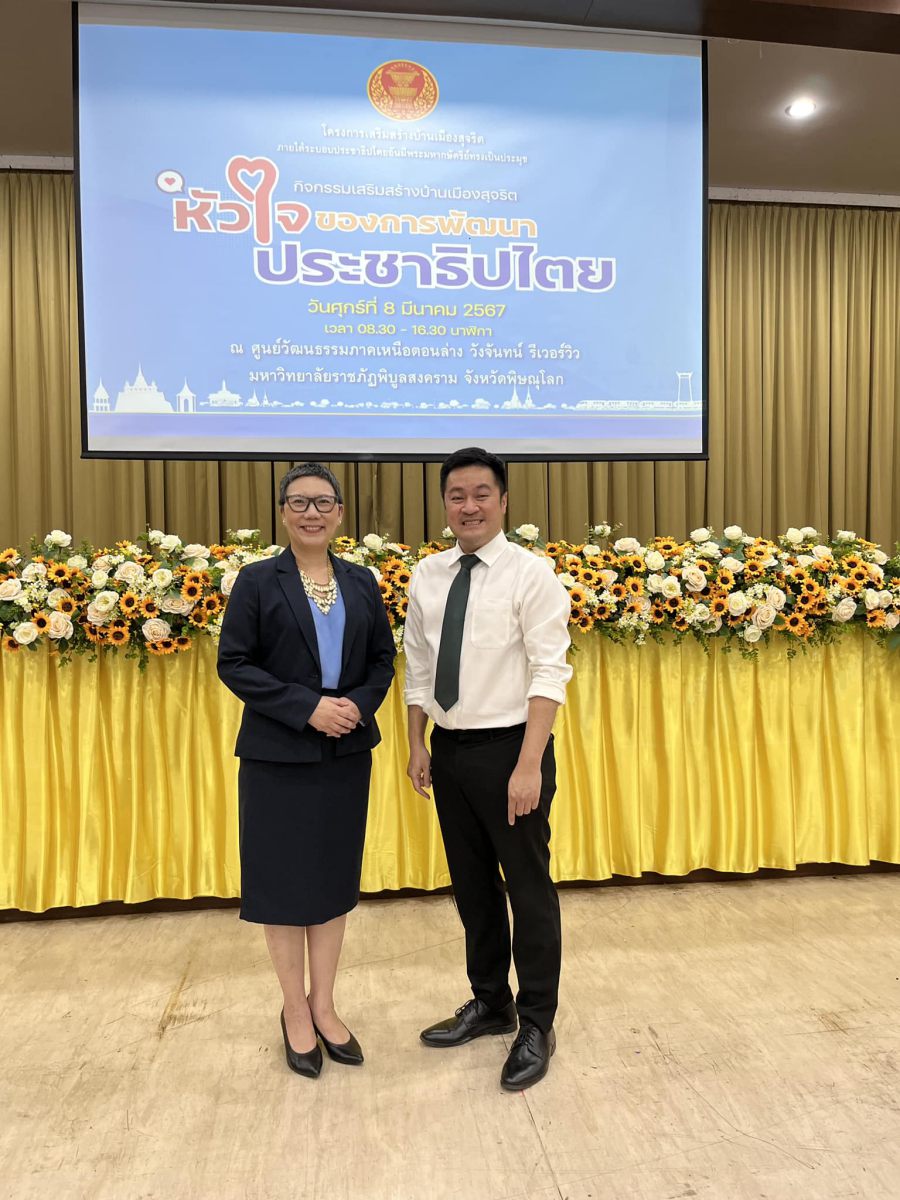 วันศุกร์ที่ 8 มีนาคม 2567 ผู้ช่วยศาสตราจารย์ ดร.นภิสา ไวฑูรเกียรติ คณบดีคณะสังคมศาสตร์ มหาวิทยาลัยนเรศวร ได้รับมอบหมายให้เป็นตัวแทนมหาวิทยาลัย เข้าร่วมพิธีเปิดโครงการ เสริมสร้างบ้านเมืองสุจริตภายใต้ระบอบประชาธิปไตยอันมีพระมหากษัตริย์ทรงเป็นประมุข ประจำปีงบประมาณ พ.ศ. 2567 ณ ศูนย์วัฒนธรรมภาคเหนือตอนล่าง วังจันทร์ ริเวอร์วิว มหาวิทยาลัยราชภัฏพิบูลสงคราม จังหวัดพิษณุโลก