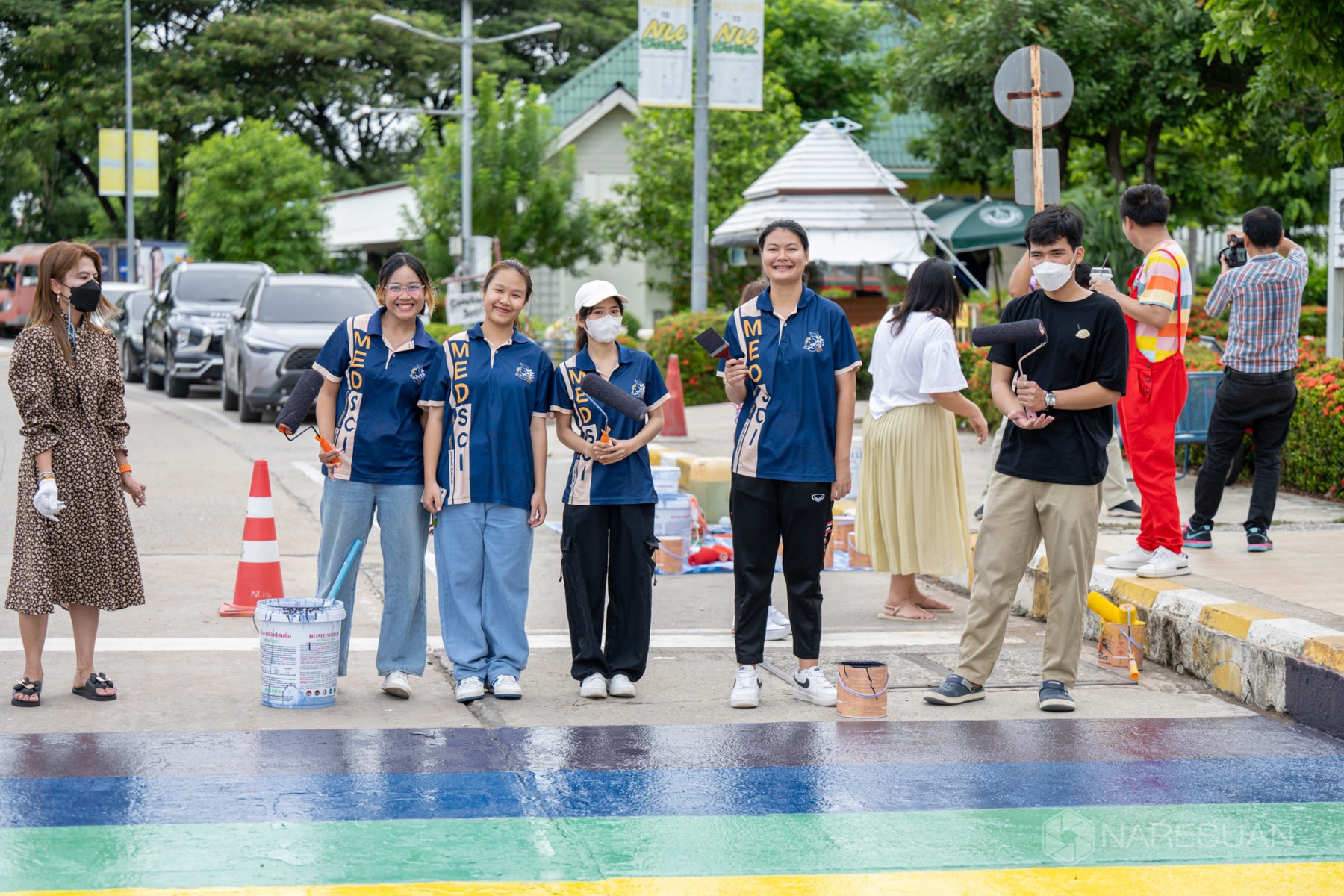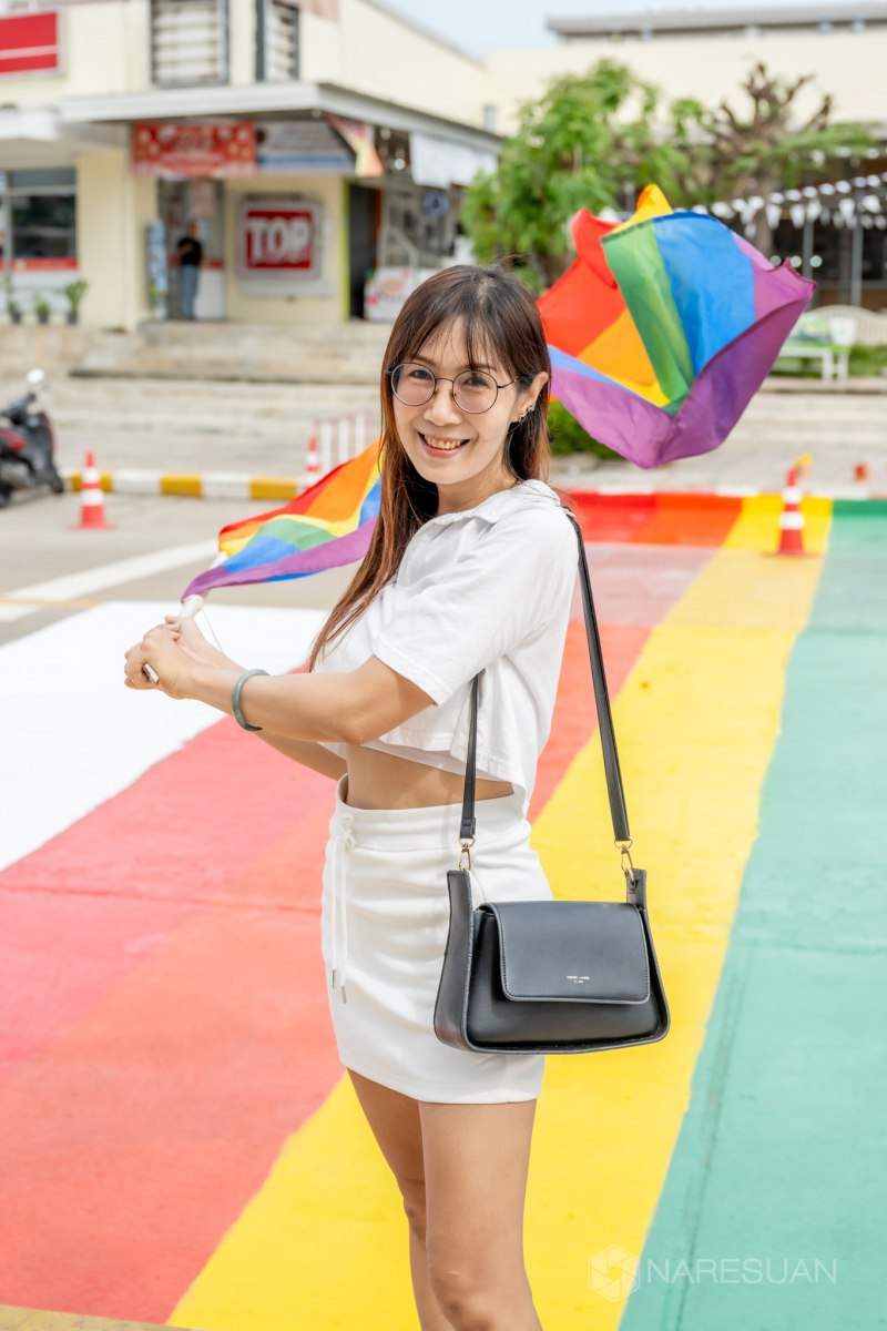 กิจกรรมที่เราใช้สื่อสารกับนิสิตคือการจัดกิจกรรม NU Pride & Rainbow Crossing หรือทางม้าลายสายรุ้ง บริเวณหน้าหอพักนิสิต ซึ่งปีนี้นับเป็นครั้งที่ 3 แล้ว เป็นผลงานร่วมกันระหว่างนิสิต คณาจารย์และบุคลากรของมหาวิทยาลัย เพื่อเป็นกิจกรรมเชิงสัญลักษณ์เพื่อสะท้อนความเป็นตัวตนของผู้มีความหลากหลายทางเพศ ให้ก้าวเดินอย่างภาคภูมิใจสถาบันแห่งนี้ ก้าวข้ามความแตกต่าง และการยอมรับซึ่งกันและกัน และที่สำคัญเราอยากให้นิสิตใช้ชีวิตอย่างมีความสุขในมหาวิทยาลัยแห่งนี้