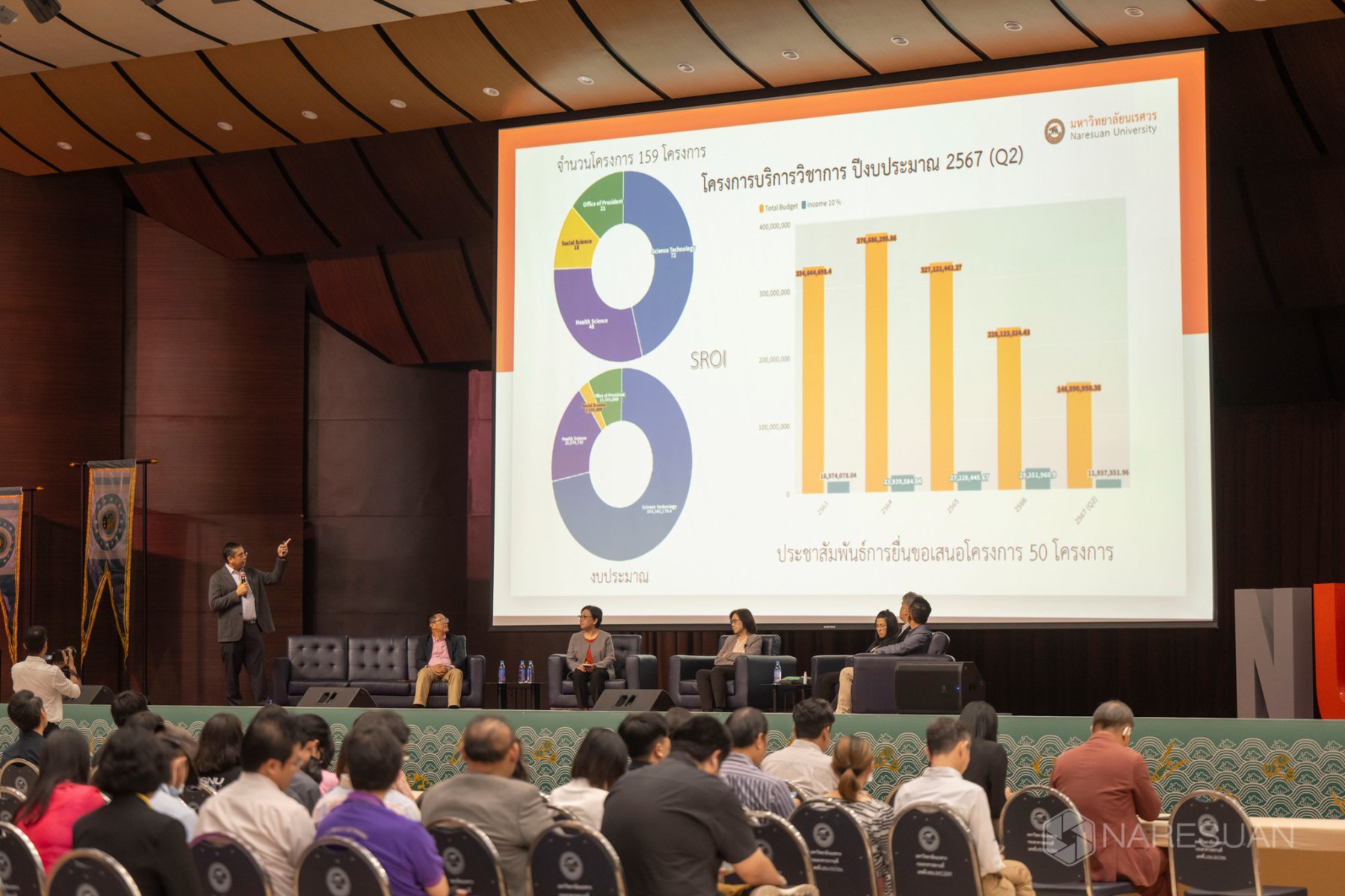 วันจันทร์ที่ 9 กรกฎาคม 2567 มหาวิทยาลัยนเรศวรได้จัดกิจกรรม เวทีผู้บริหารพบประชาคม ครั้งที่ 2 โดยมี รองศาสตราจารย์ ดร.ศรินทร์ทิพย์ แทนธานี รักษาราชการแทนอธิการบดี พร้อมด้วยรองอธิการบดีทั้ง 6 ท่าน ร่วมรายงานผลการดำเนินงานในรอบ 6 เดือนที่ผ่านมา และเปิดเผยแผนงานในอนาคตต่อประชาคมมหาวิทยาลัย โดยมีผู้เข้าร่วมกว่า 1,000 คน ทั้งแบบออนไลน์และเข้าร่วมในหอประชุมมหาราช