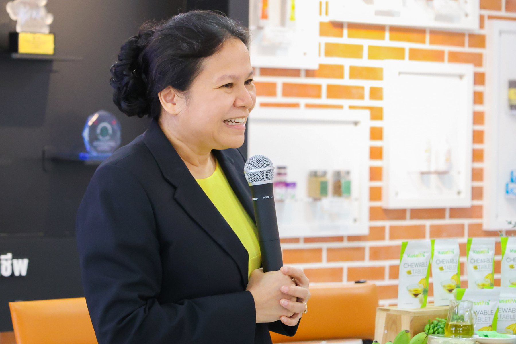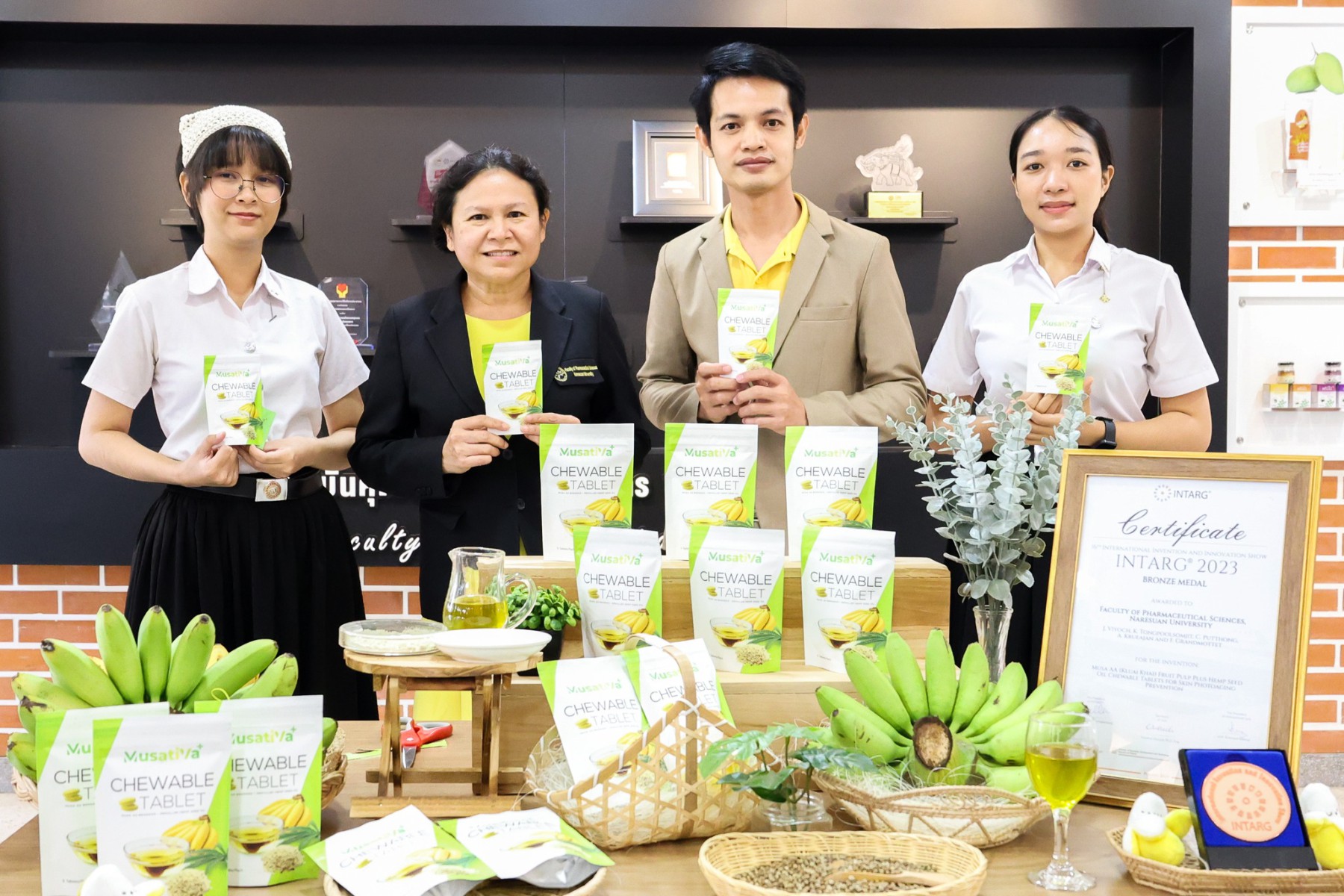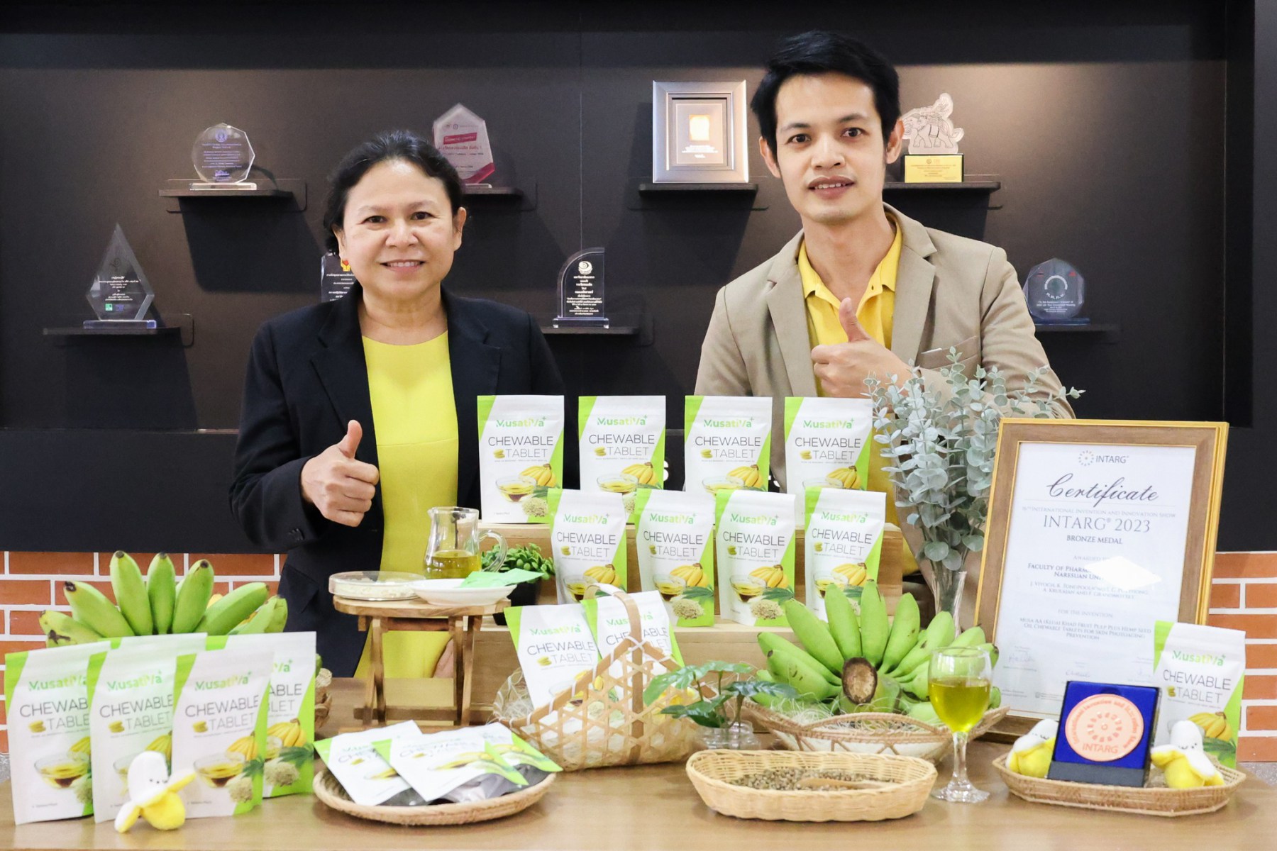 ผลิตภัณฑ์นิวตราซูติคอลเม็ดเคี้ยวกล้วยไข่ผสมน้ำมันเมล็ดกัญชงนี้ ได้รับการออกแบบเพื่อเพิ่มการดูดซึมสารสำคัญอย่างเบต้า-แคโรทีน ซึ่งมีคุณสมบัติในการป้องกันการแดงของผิวหนังจากการสัมผัสแสงแดด โดยนวัตกรรมนี้ถือเป็นการแปรรูปสินค้าเกษตรให้เป็นผลิตภัณฑ์มูลค่าสูงด้วยวิทยาศาสตร์ เทคโนโลยี และนวัตกรรม