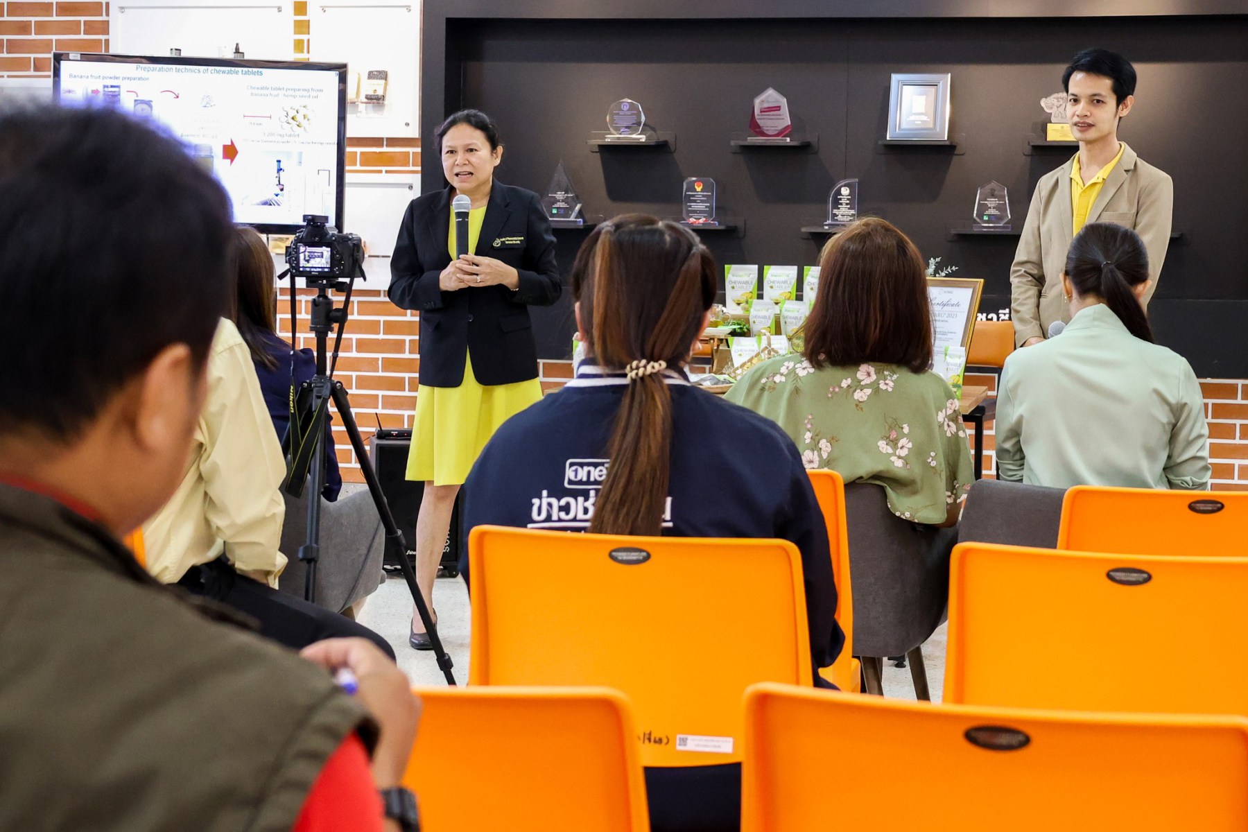 วันพุธที่ 24 มกราคม 2567 มหาวิทยาลัยนเรศวรจัดงานแถลงข่าวเปิดตัวนวัตกรรมใหม่ “ผลิตภัณฑ์นิวตราซูติคอลเม็ดเคี้ยวกล้วยไข่ผสมน้ำมันเมล็ดกัญชง” ซึ่งได้รับเกียรติจากศาสตราจารย์ ดร.เภสัชกรหญิงกรกนก อิงคนินันท์ รองอธิการบดีฝ่ายพัฒนางานวิจัยและนวัตกรรม กล่าวต้อนรับสื่อมวลชนและผู้เข้าร่วมงาน ณ ห้อง H111 คณะเภสัชศาสตร์ มหาวิทยาลัยนเรศวร