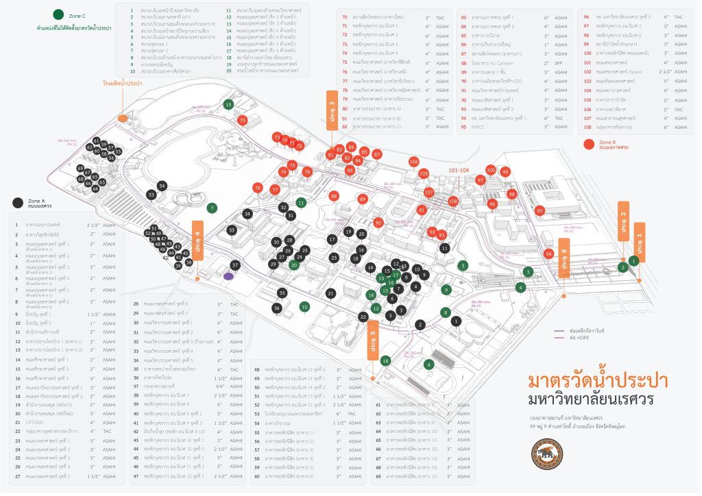 มหาวิทยาลัยนเรศวร ดำเนินการติดตั้ง มาตรวัดน้ำประปา จำนวน 108 จุด ครอบคลุมทุกอาคารภายในมหาวิทยาลัย เพื่อใช้ในการ ติดตามและรายงานปริมาณการใช้น้ำ อย่างเป็นระบบ ซึ่งข้อมูลที่ได้จะถูกนำมาประกอบการวางแผนการใช้น้ำให้เกิดประสิทธิภาพสูงสุด และ ส่งเสริมการใช้น้ำประปาให้เกิดประโยชน์คุ้มค่า ตามแนวทางการบริหารจัดการทรัพยากรน้ำอย่างยั่งยืนของมหาวิทยาลัย