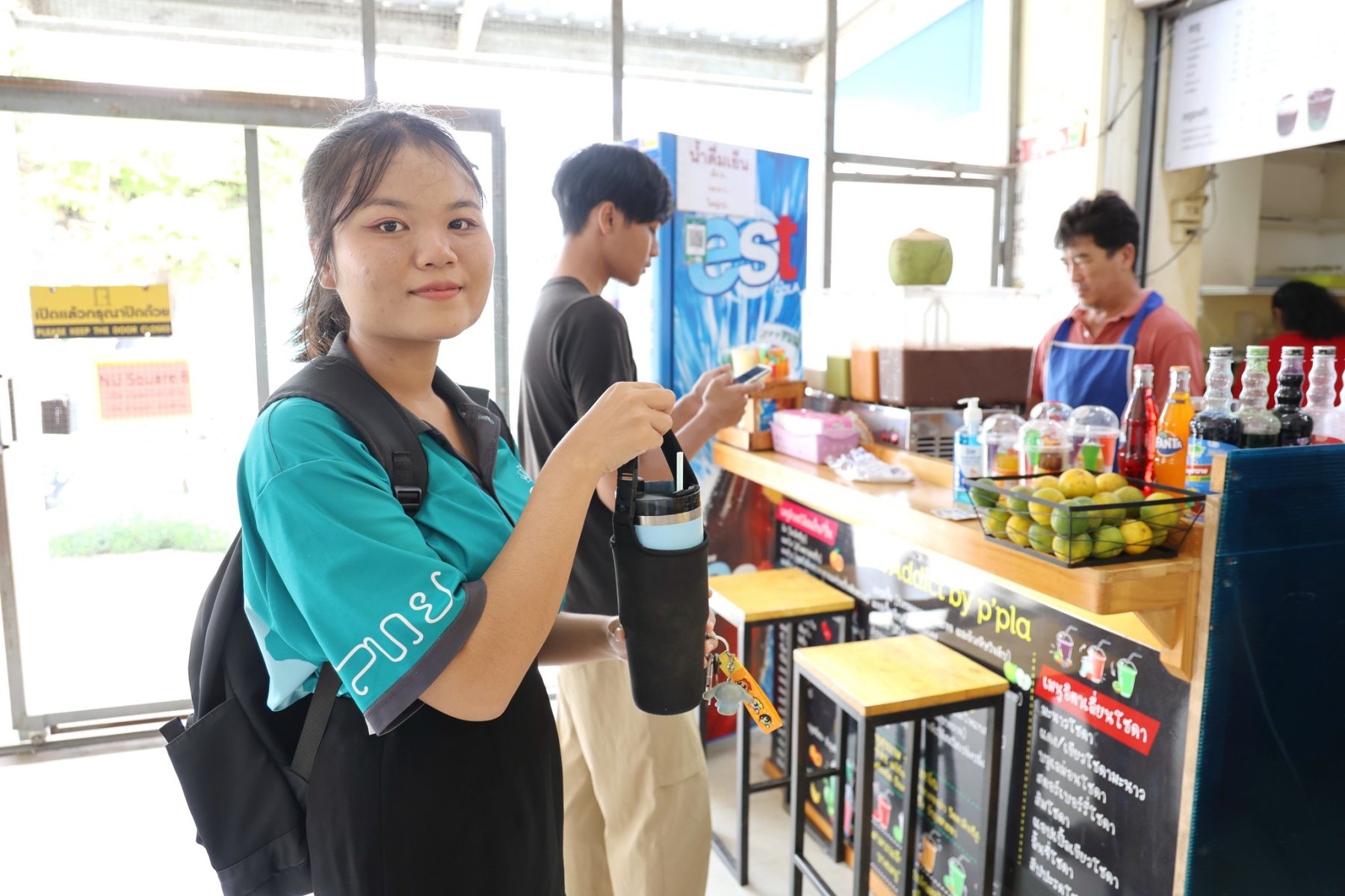 - นำแก้วส่วนตัวมาใช้เอง ลดการใช้แก้วพลาสติกที่ก่อให้เกิดปัญหาขยะจำนวนมาก