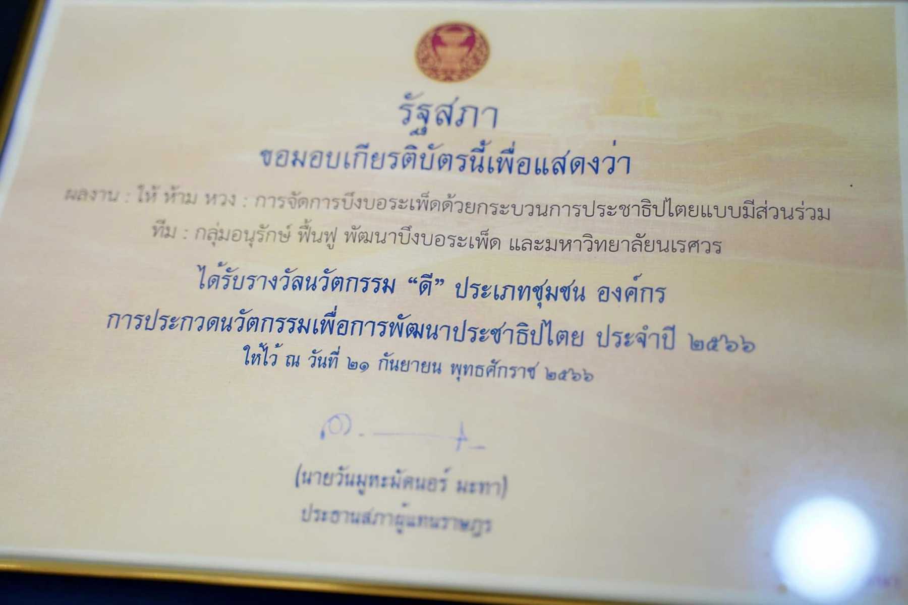ม.นเรศวร คว้ารางวัลนวัตกรรมเพื่อการพัฒนาประชาธิปไตย ปี 2566 เสริมสร้างการมีส่วนร่วมของชุมชนและสังคม