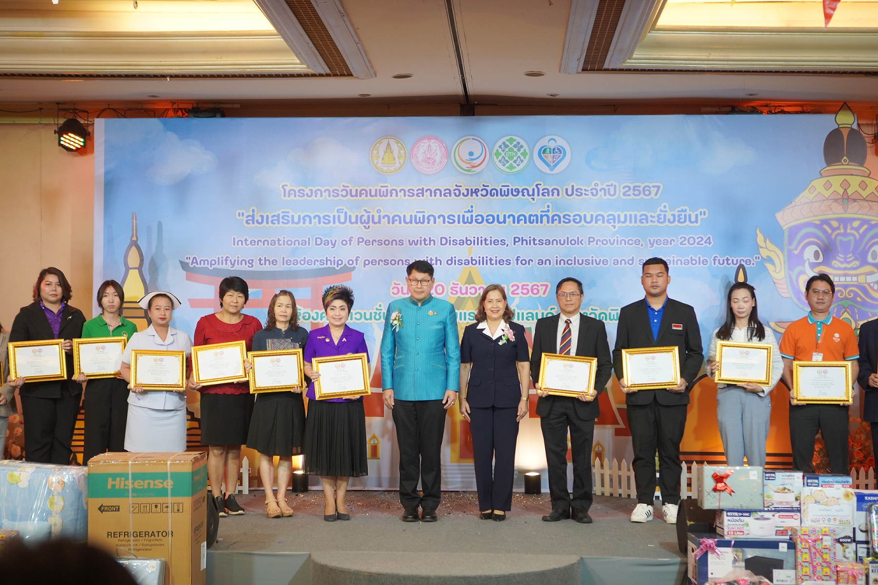 พิธีมอบรางวัลจัดขึ้นในงาน “วันคนพิการสากลจังหวัดพิษณุโลก ประจำปี 2567” (International Day of Persons with Disabilities, Phitsanulok Province, year 2024) ภายใต้หัวข้อ “ส่งเสริมการเป็นผู้นำคนพิการเพื่ออนาคตที่ครอบคลุมและยั่งยืน” (Amplifying the leadership of persons with disabilities for an inclusive and sustainable future) ณ ห้องคอนเวนชั่นฮอลล์ ชั้น 5 โรงแรมท็อปแลนด์ จังหวัดพิษณุโลก โดยมีหน่วยงานและองค์กรเครือข่ายด้านคนพิการเข้าร่วมอย่างคับคั่ง